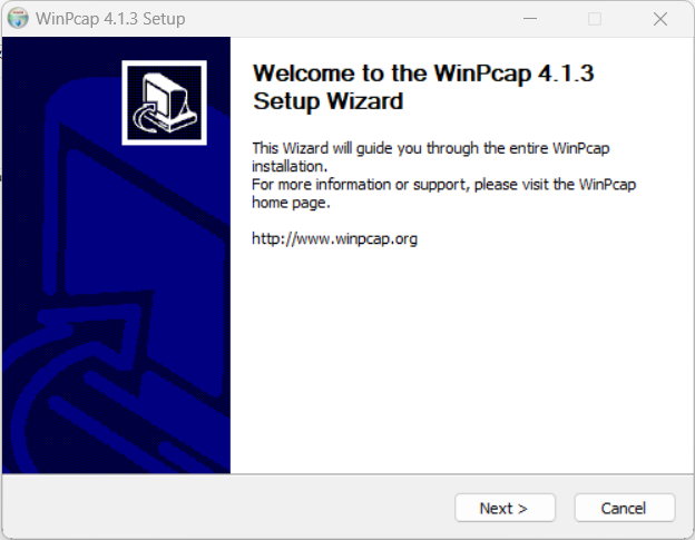 2. 双击后进入“Welcome to the WinPcap 4.1.3 Setup Wizard”安装向导界面,单击“Next>”。