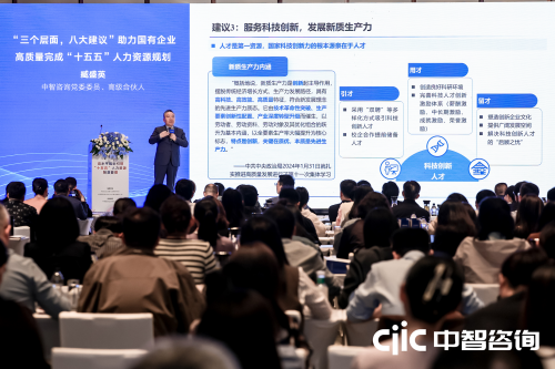 以下为会上分享的核心观点和精彩内容回顾 战略引领 精准布局“十五五”人力资源规划 在“十五五”战略背景下,人力资源规划肩负着服务国家战略、推动高质量发展的新使命。面对这一深刻变革,中智咨询给出了以下“十五五”人力资源规划建议: 以变应变,三个层面、八大建议开展“十五五”人力资源规划 面对政策深化、产业重构、技术颠覆和人才升级的全新趋势,中智咨询从人才队伍、管理机制、落地实施三个层面给出了“八大建议”,强调人力资源从业者在编制“十五五”规划时要以变应变。另外,“一分部署,九分落实”,人力资源规划需要系统推进,闭环管理。 盘业务、盘队伍、盘机制,“三位一体”人才盘点助力“十五五”人才发展规划 中智咨询强调,人才盘点要坚持战略导向、数据驱动,对标一流,在实际操作中要围绕盘业务、盘队伍、盘机制进行“三位一体”的人才盘点,结合数字化工具提升效率,实现精准规划、问题诊断和管理优化。 抓关键、强培养、优机制,多维发力培养干部领导力,打造“十五五“战略落地“火车头” 干部是组织战略落地的“火车头”,承担着将战略目标转化为团队行动的关键职责,也是文化传导和创新驱动的关键力量。以培养年轻干部为例,中智咨询指出,要面向未来识别潜力人才,找准发力点,依托“一人一档”动态管理,通过测培一体的“青苗计划”及轮岗实践,在成事中育人。 聚焦干部管理机制提质升效问题,中智咨询创新性提出“1+5+N”领导力模型,识别并培养干部人才能力,实现干部管理机制持续优化。同时要文化驱动并行,要将文化价值观落实成核心行为能力模型,做到政治引领,机制融合,模式创新。